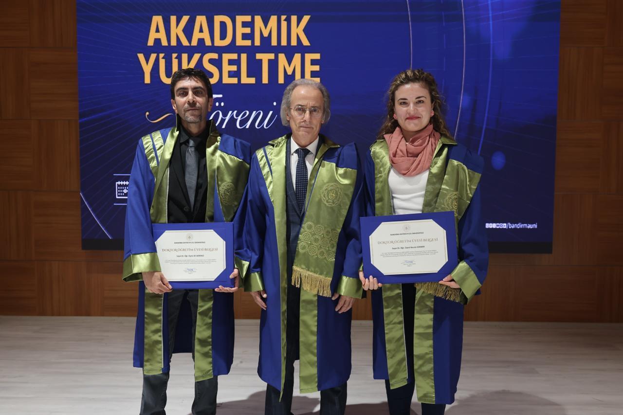 Akademik yükseltme süreci kapsamında; 2024 ve 2025 yıllarında profesör, doçent ve dr. öğretim üyesi unvanlarını almaya hak kazanan öğretim üyelerimize belgeleri takdim edildi.