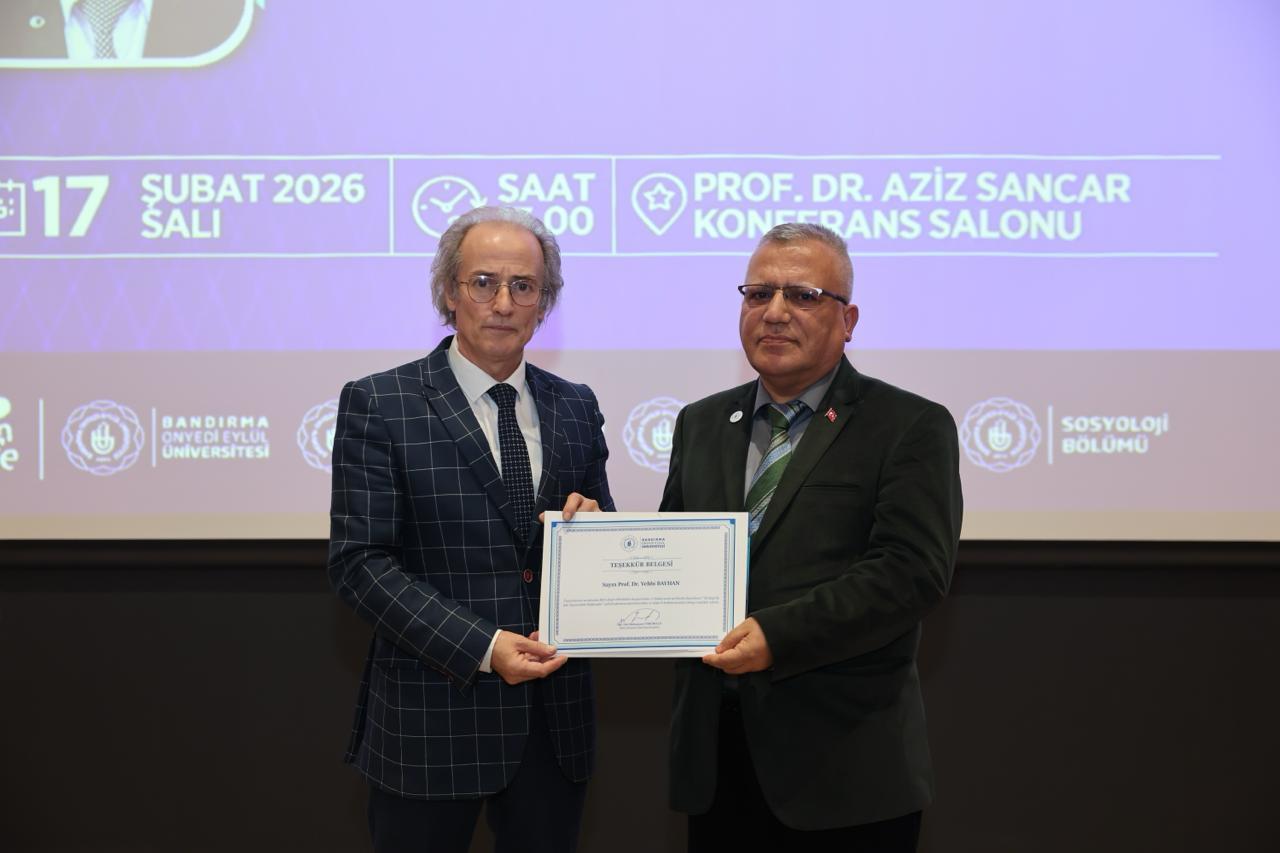 Üniversitemiz Bilim İletişimi Ofisi ile Fakültemiz Sosyoloji Bölümü iş birliğinde “Türkiye’de Aile Yapısındaki Değişmeler” konulu konferans düzenlendi. Prof. Dr. Aziz Sancar Konferans Salonu’nda gerçekleştirilen konferansa Dekanımız Prof. Dr. Zekai Mete, Adalet Bakanlığı Bandırma Denetimli Serbestlik Şube Müdürü Özcan Deniz, akademik ve idari personelimiz, öğrencilerimiz ile vatandaşlarımız katılım sağladı.