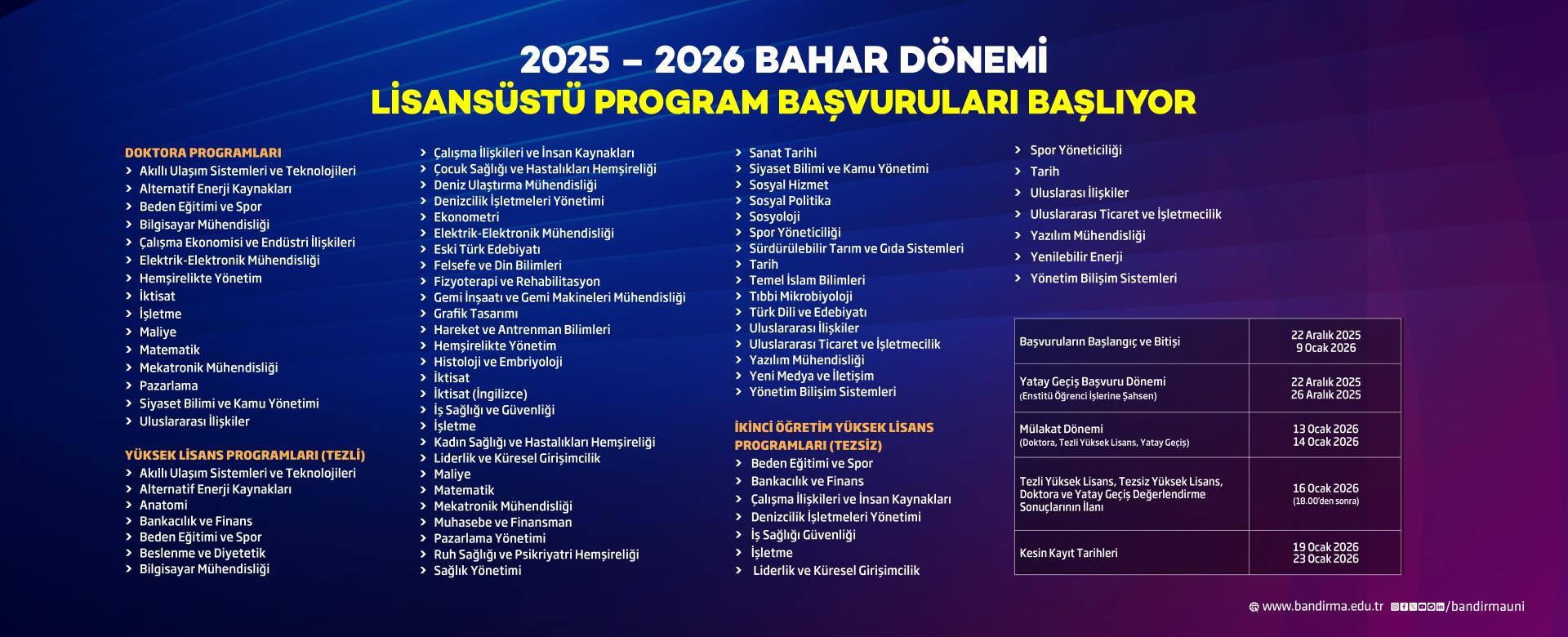 2025-2026 Eğitim Öğretim Yılı Bahar Dönemi Lisansüstü Başvuruları Başladı