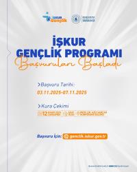 İŞKUR Gençlik Programı kapsamında üniversitemizde yürütülecek olan programa başvurular 3-7 Kasım 2025 tarihleri arasında alınacaktır.