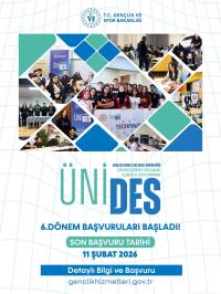 T.C. Gençlik ve Spor Bakanlığı Gençlik Hizmetleri Genel Müdürlüğü tarafından yürütülen Üniversite Öğrenci Toplulukları İş Birliği ve Destek Programı (ÜNİDES) kapsamında 6. dönem başvuruları başladı.