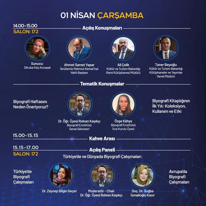 Akademi ve sanat dünyasından birçok ismin katkı sunacağı program kapsamında, biyografi çalışmalarının kuramsal ve yöntemsel boyutları farklı yönleriyle ele alınacaktır. Etkinliğin açılış bölümünde, Bölümümüz Yakınçağ Tarihi Anabilim Dalı Başkanı Dr. Öğr. Üyesi Rıdvan Kaşıkçı konuşmacı olarak yer alacaktır. Kaşıkçı ayrıca açılışın ardından düzenlenecek panelde moderatörlük görevini üstlenecektir.