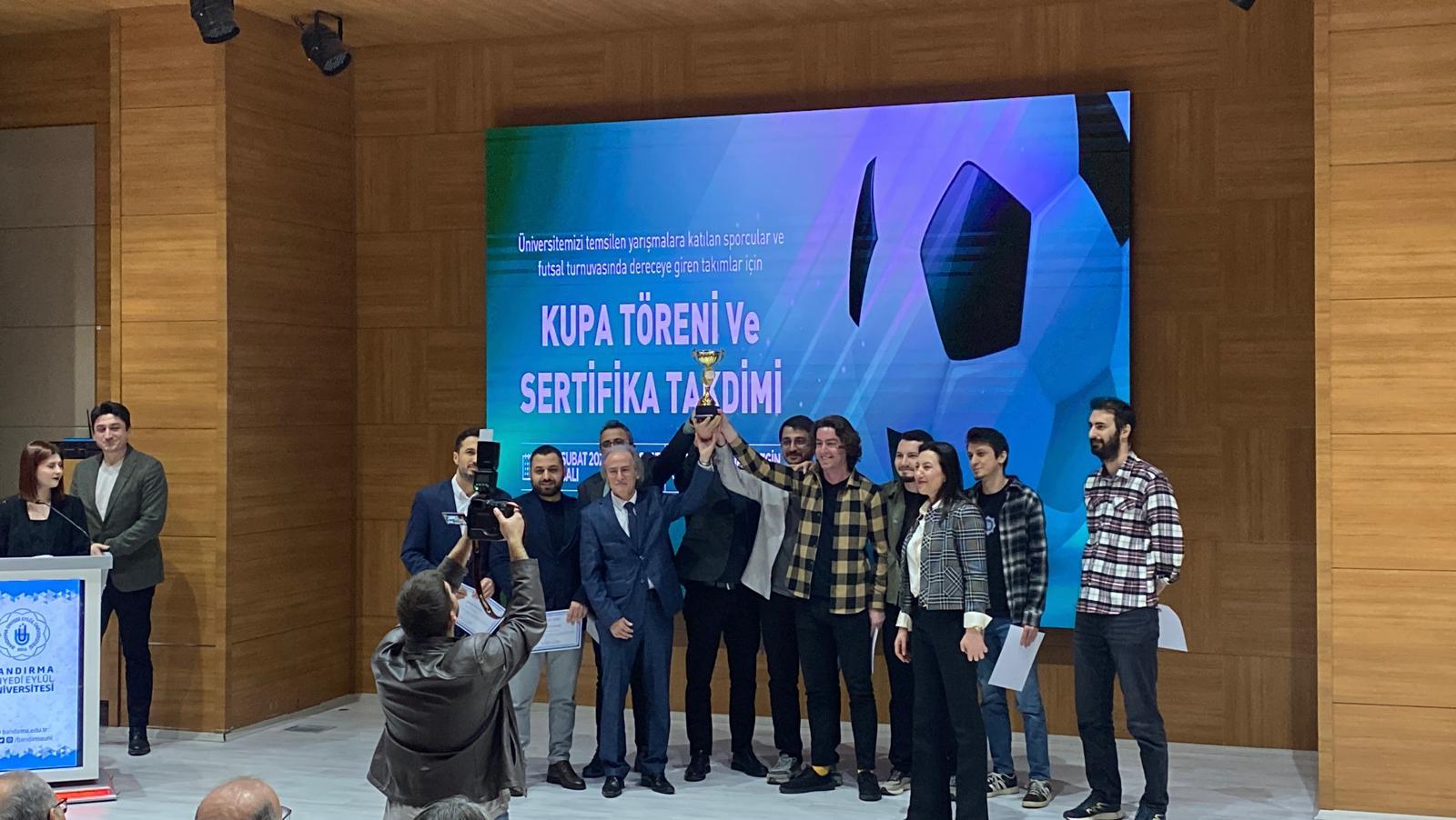 Turnuva sonunda düzenlenen ödül töreninde Spor Bilimleri Fakültesi Dekan Yardımcısı Prof. Dr. Aydın KARAÇAM tarafından takıma kupa ve başarı sertifikaları takdim edildi. Tören Fakültemiz Dekanı Prof. Dr. Zekai METE ile çektirilen hatıra fotoğrafı ile sona erdi.